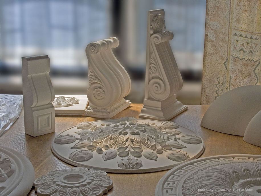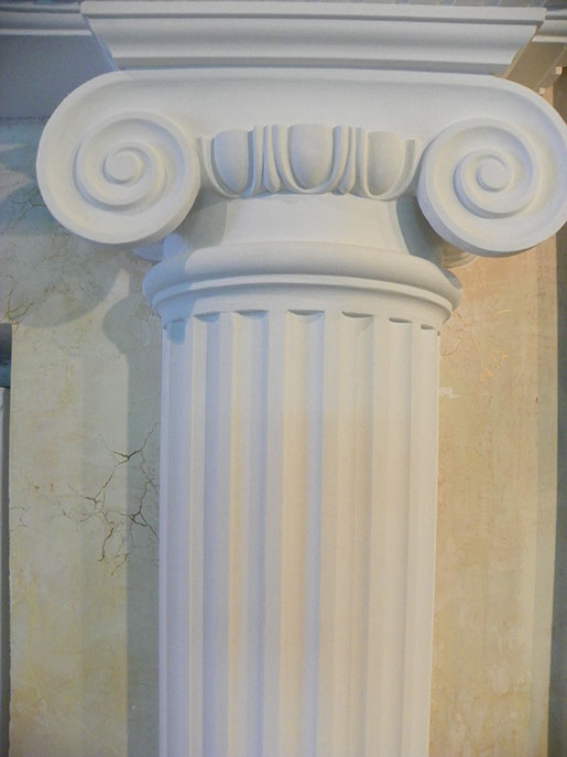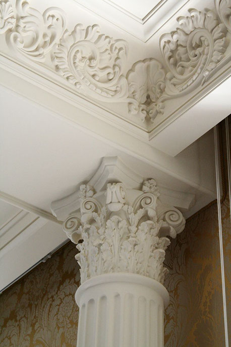 Лепные украшения придадут шарм и индивидуальность помещению любого назначения. Колонны и полуколонны в гостиной создают особый ритм и торжественный настрой.