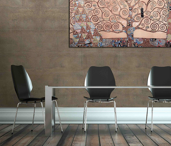 Самые различные вариации фактурных или так называемых структурных штукатурок, которые позволяют создавать крупные рельефы и объемные образы, тончайшие линии и деликатные изгибы. Подобный материал поможет замаскировать и выровнять небольшие неровности, скрыть дефекты стен и превратить поверхность в настоящее произведение искусства.